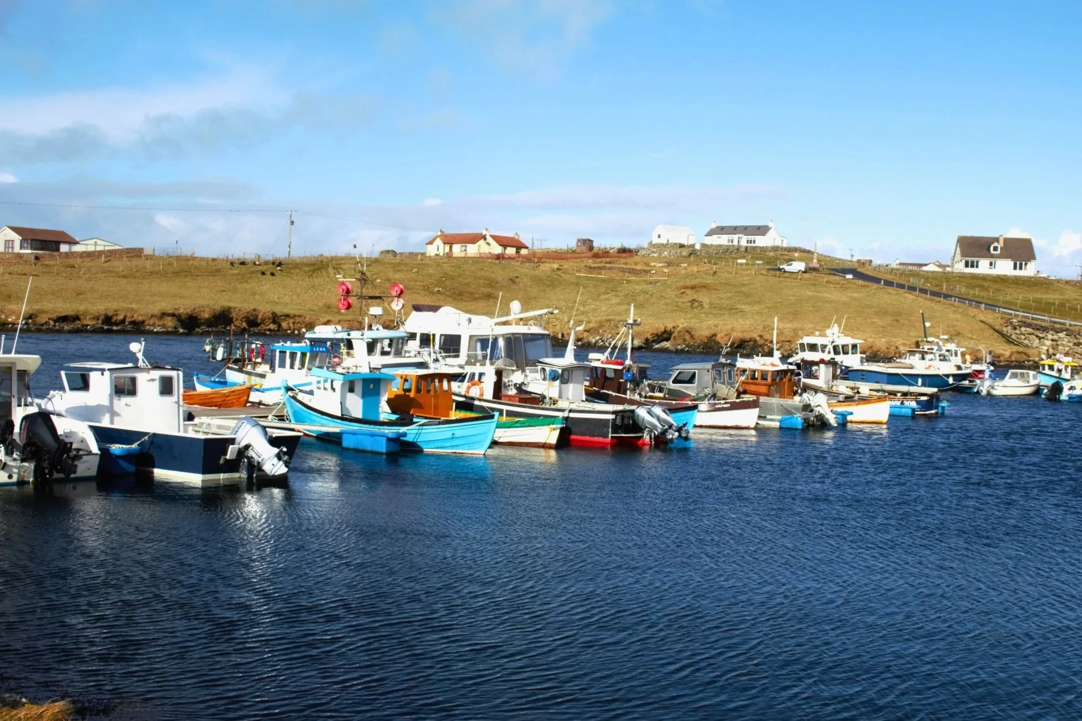 The marina and slipway make Bridge End an excellent base for groups with kayaks or SUP boards. Launching from the sheltered voe is safe, easy, and reliably protected, making it ideal for exploring nearby waters. (I will say that the chill March wind put us off taking to the water!)